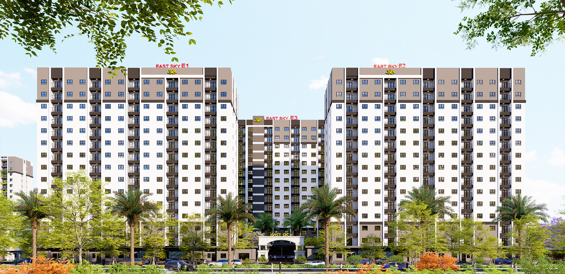 East Sky là khu NOXH chung cư cao tầng tiếp theo trong KĐT Ecogarden, được phát triển trên quỹ đất khoảng 20.315m², gồm 4 tòa chung cư E1, E2, E3 và E4 với tổng 684 căn hộ được thiết kế tối ưu công năng.