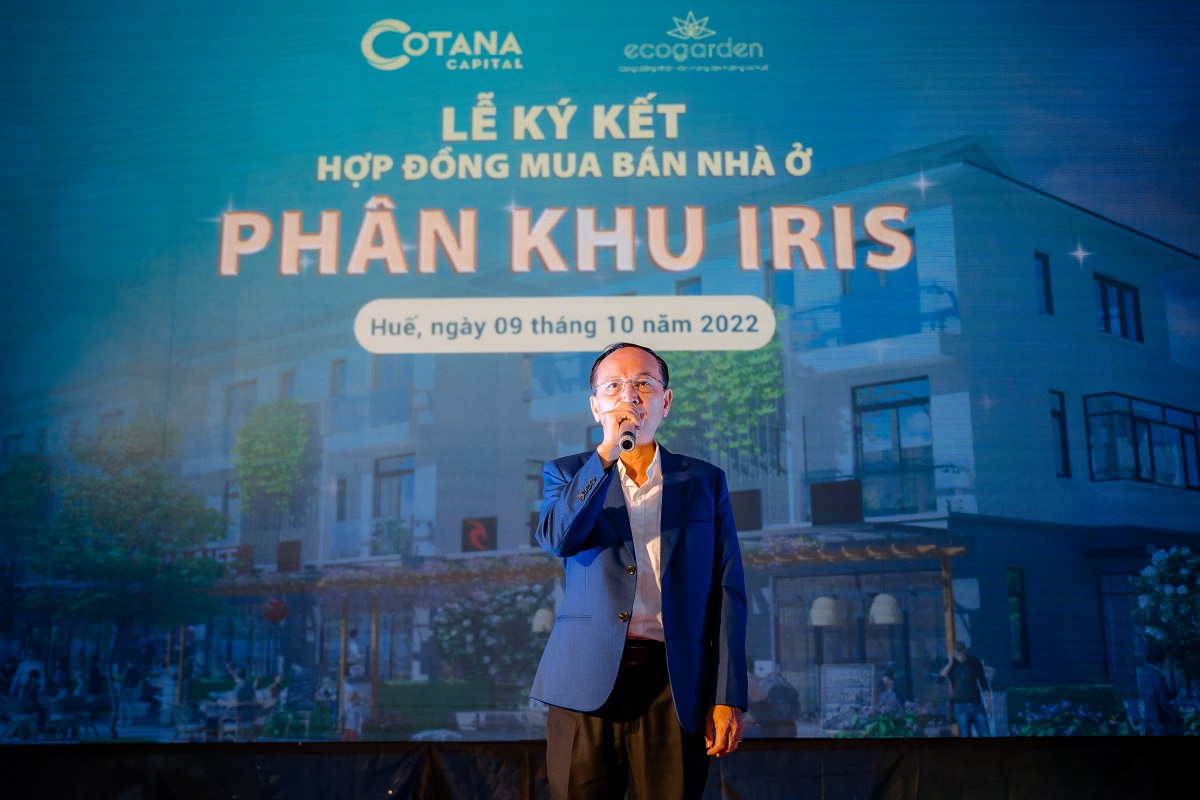 Phát biểu tại buổi lễ, ông Đặng Anh Tuấn - đại diện chủ đầu tư gửi lời cảm ơn khách hàng đã tin tưởng lựa chọn Iris - một phân khu "được lòng" nhà đầu tư tại Thừa Thiên Huế khi nằm ở trung tâm dự án Ecogarden là nơi để an cư cũng như đầu tư. Iris được xây dựng trên tổng diện tích 2.3ha với 96 căn Biệt thự song lập thương mại và biệt thự song lập.