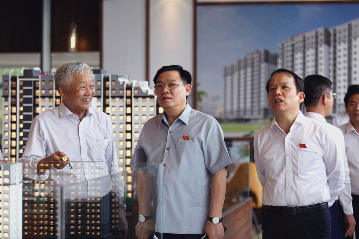 Chủ tịch Quốc hội đề nghị, chủ đầu tư cần phối hợp chặt chẽ với địa phương tháo gỡ các vướng mắc trong quá trình triển khai để sớm hoàn thành, đưa dự án vào hoạt động. Đồng thời, lưu ý địa phương cần quy hoạch thêm các thiết chế về văn hoá, thể thao, y tế, giáo dục để các khu nhà ở xã hội đầy đủ các thiết chế.