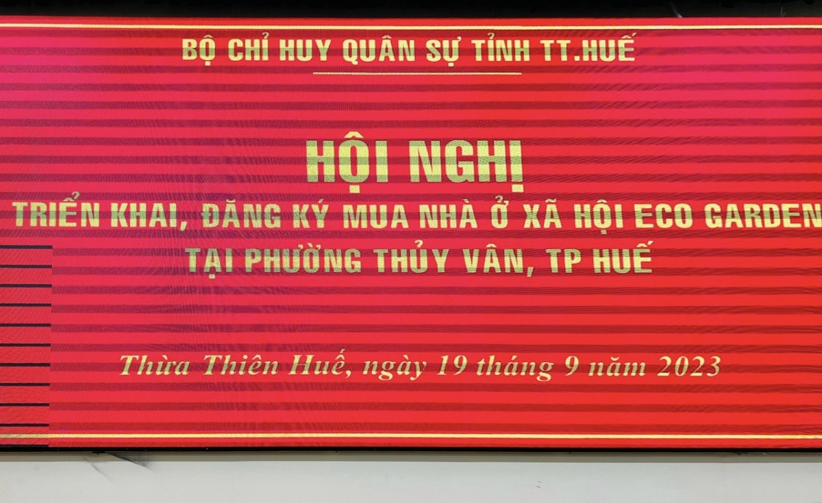Sáng ngày 19/09/2023, đại diện Công ty CP Đầu tư và Phát triển Bất động sản Cotana Capital đã có buổi hội nghị với Bộ chỉ huy Quân sự tỉnh Thừa Thiên Huế về việc triển khai, đăng ký mua nhà ở xã hội tại khu đô thị Ecogarden.