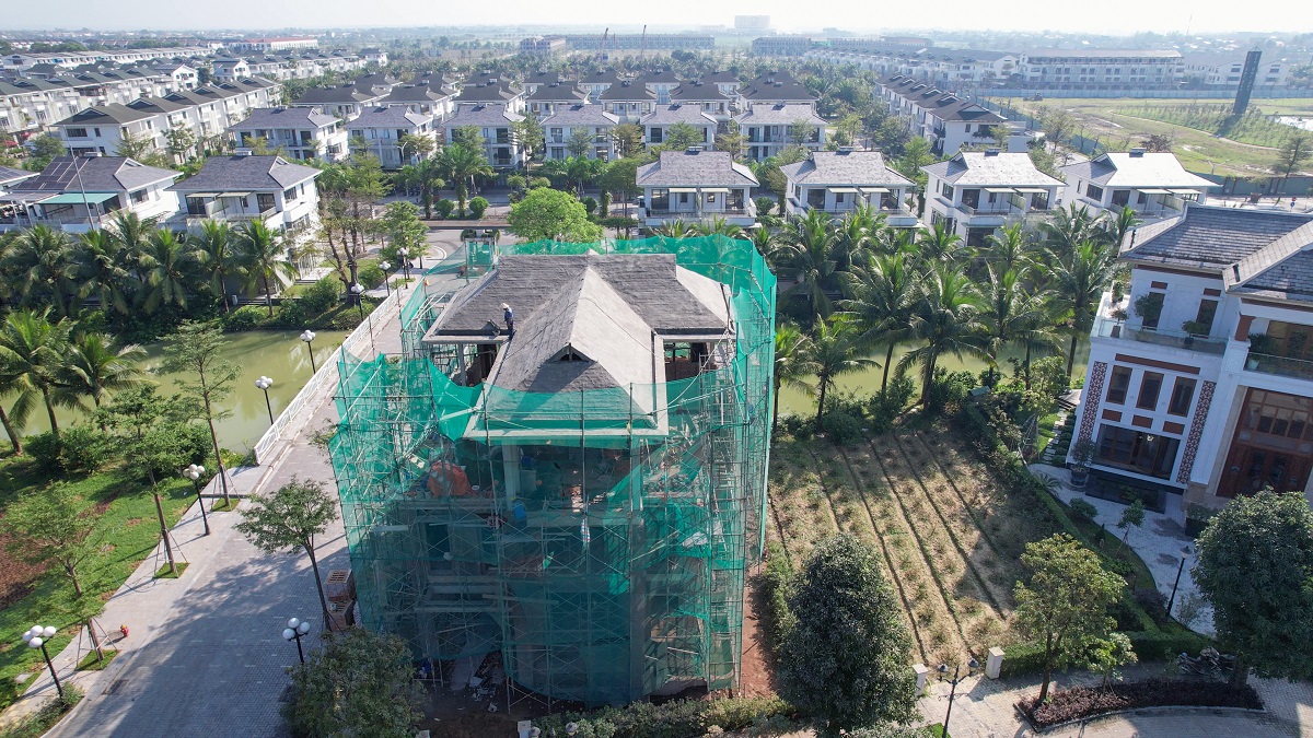 Căn nhà mẫu tại phân khu Jasmine đang dần lộ diện, với vị trí đắc địa ngay mặt tiền đường trung tâm của KĐT - Phượng Tím và đối diện khu cư dân sôi động của West Sky, hứa hẹn sẽ là sản phẩm của chốn phồn vinh.