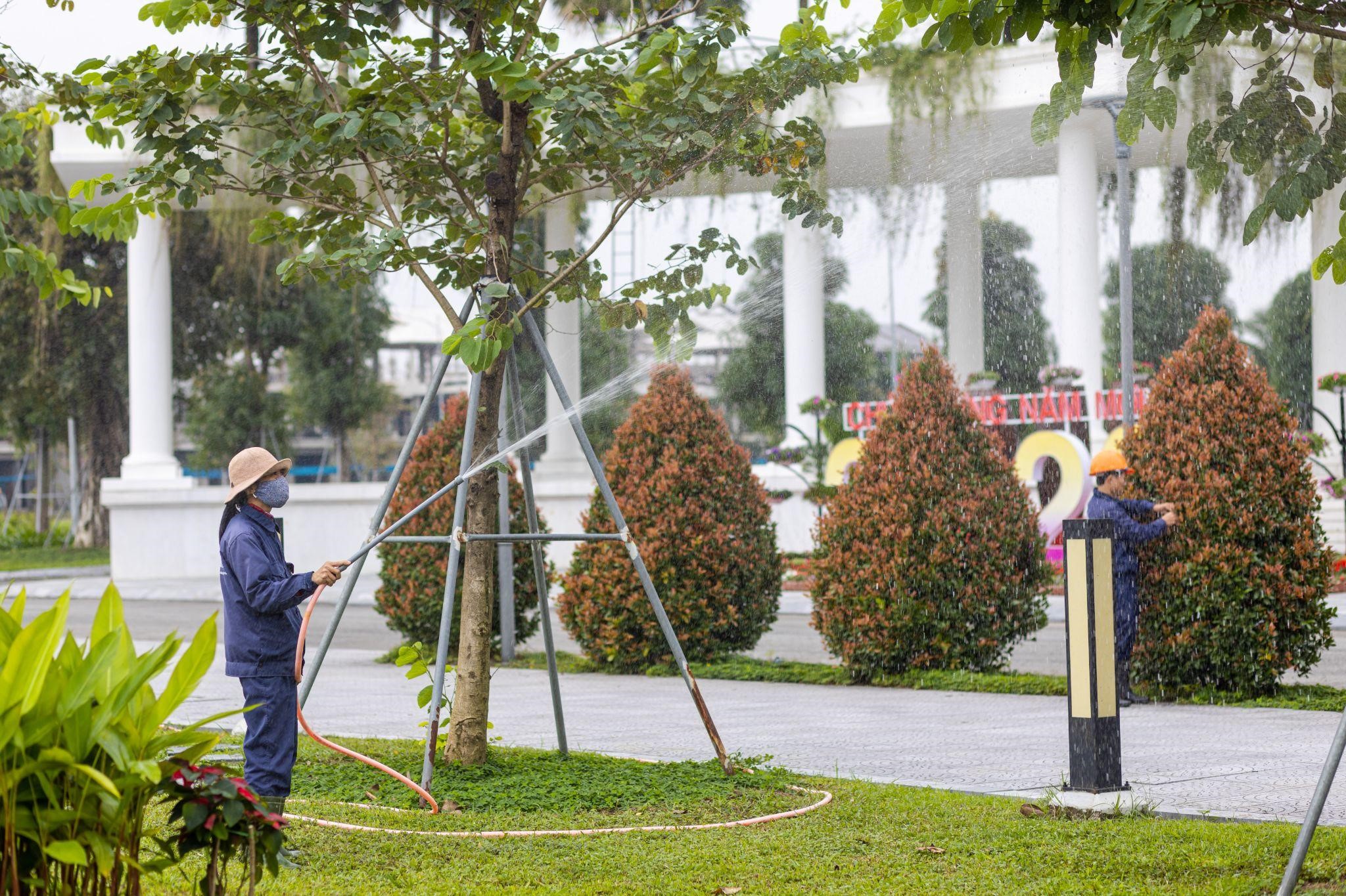 Những khóm cây, hoa ở khắp nơi trong KĐT chợt thức giấc bởi ánh nắng ban mai và làn nước mát lành tưới tẩm từ ngọn đến từng cội rễ.
