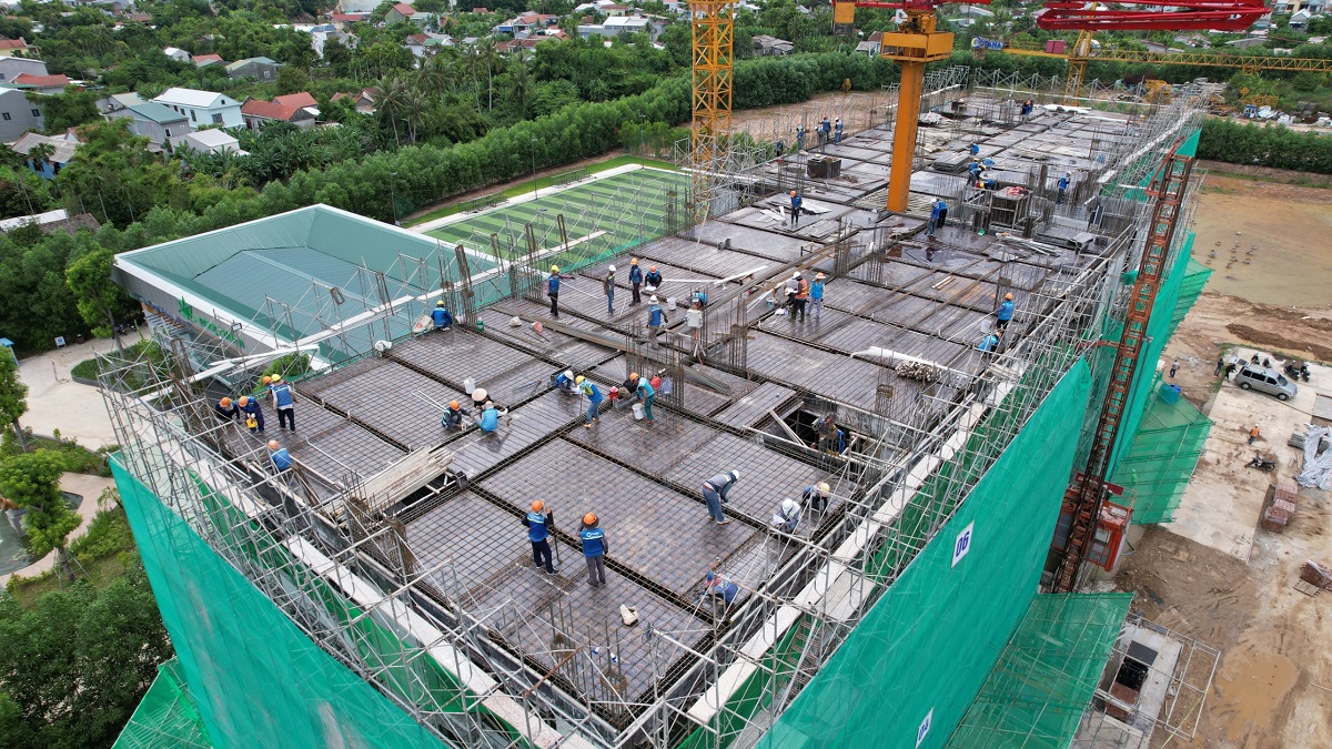 Nhà ở xã hội – chung cư cao tầng West Sky gồm 4 tòa, cao 15 tầng. Gần 2 tháng sau ngày khởi công, đến nay, tòa W3 đã hoàn thành đổ sàn tầng 7 và đảm bảo kế hoạch tháng 6/2024 sẽ hoàn thành những căn nhà ở xã hội chất lượng và hiện đại.