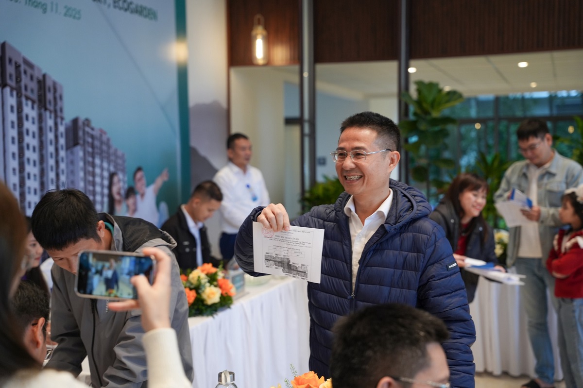 Chiều 19/11/2025, nhà mẫu NOXH tại KĐT Ecogarden sôi động hơn bao giờ hết. Chỉ có 40/149 căn hộ W4 được đưa vào bốc thăm, nhưng đã có hơn 240 hồ sơ hợp lệ trong tổng số hàng trăm hồ sơ đăng ký gửi về. Tỷ lệ cạnh tranh cao cùng sự tham gia của đông đảo khách hàng, tất cả đã tạo nên một bầu không khí vừa háo hức vừa vô cùng hồi hộp.